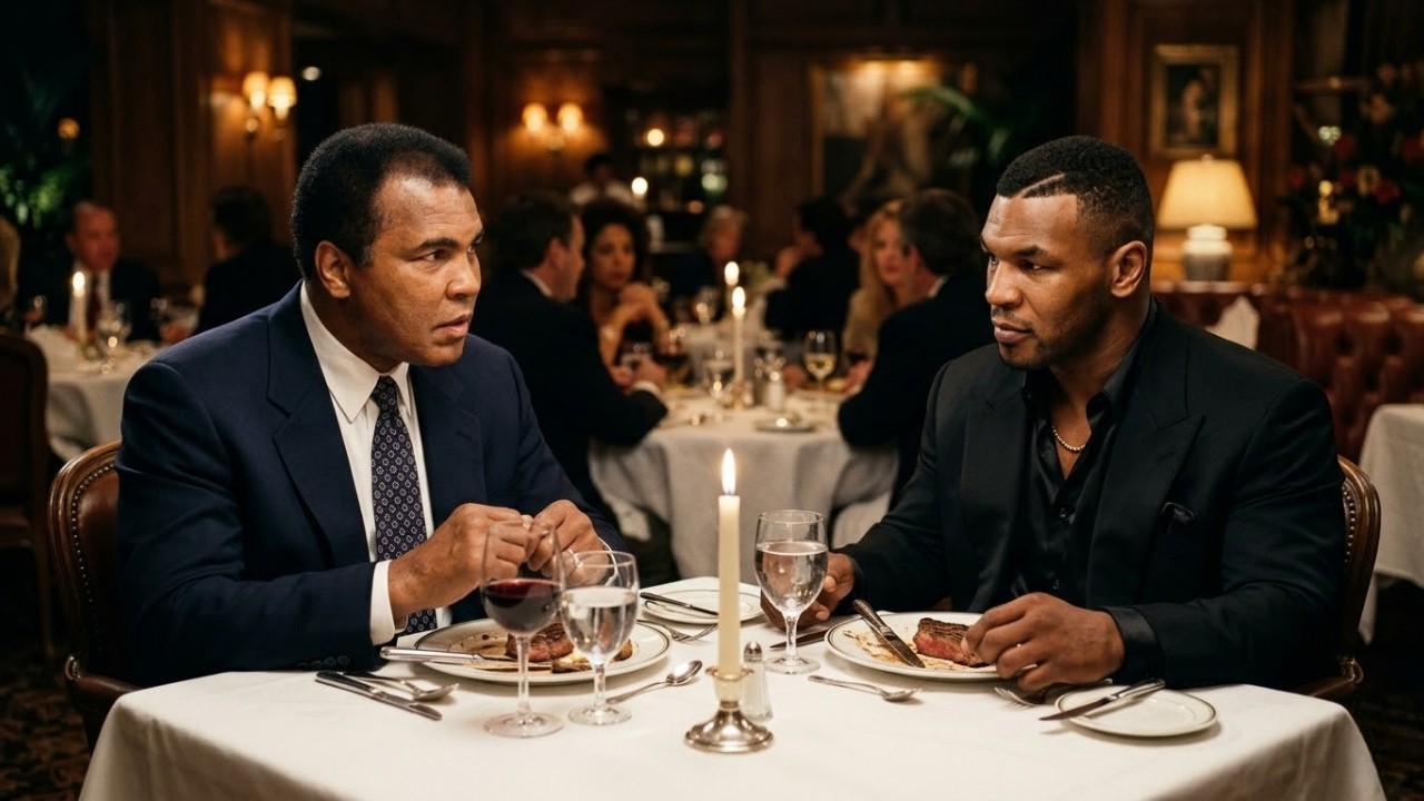 The silence stretched across the private dining room like a challenge nobody wanted to accept. Muhammad Ali, the greatest, the man who’d never been quiet about anything in his life, sat across from Mike Tyson without saying a word. His hands trembled slightly as he reached for his water glass, a detail that only Mike noticed. In 15 minutes, Mike would see something that would change how he understood greatness forever. In 30 minutes, he’d learned that being the most dangerous man alive meant nothing compared to being the most