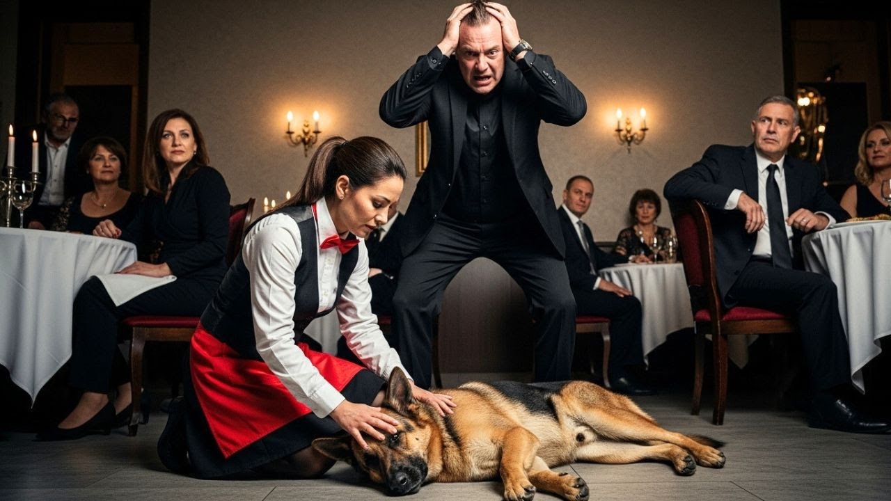 And on the cold marble, surrounded by overturned chairs and scattered silverware, lay a massive German Shepherd. His body convulsed violently. Foam gathered at his mouth. His eyes had rolled back, showing only white. The catering boxes slipped from Ellie’s hands and hit the floor with a crash. Every head turned toward her, but she wasn’t looking at them.