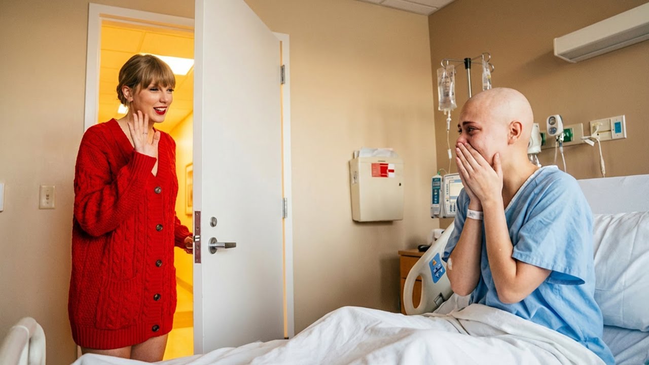 She looked careful, present, like she knew this wasn’t a meet and greet. It was someone’s real life. [music] Taylor walked in slowly like she was giving Hannah control over every inch of the moment. She stopped by the [music] bed, not too close. Then she looked at Hannah’s beanie at her pale cheeks at the way her hands rested like they were too heavy to lift.