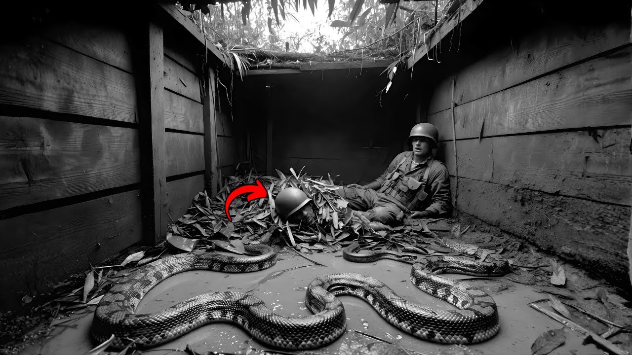 The effect was immediate. The bamboo lattis collapsed. The point man’s leg dropped through into the pit. His full weight came down. Seven bamboo pit vipers, agitated from two days of captivity, struck instantly. Multiple strikes, legs, ankle, lower calf. The point man screamed. Not the controlled yell of someone trained to manage pain, but a primal shriek of pure terror. He tried to pull his leg out.