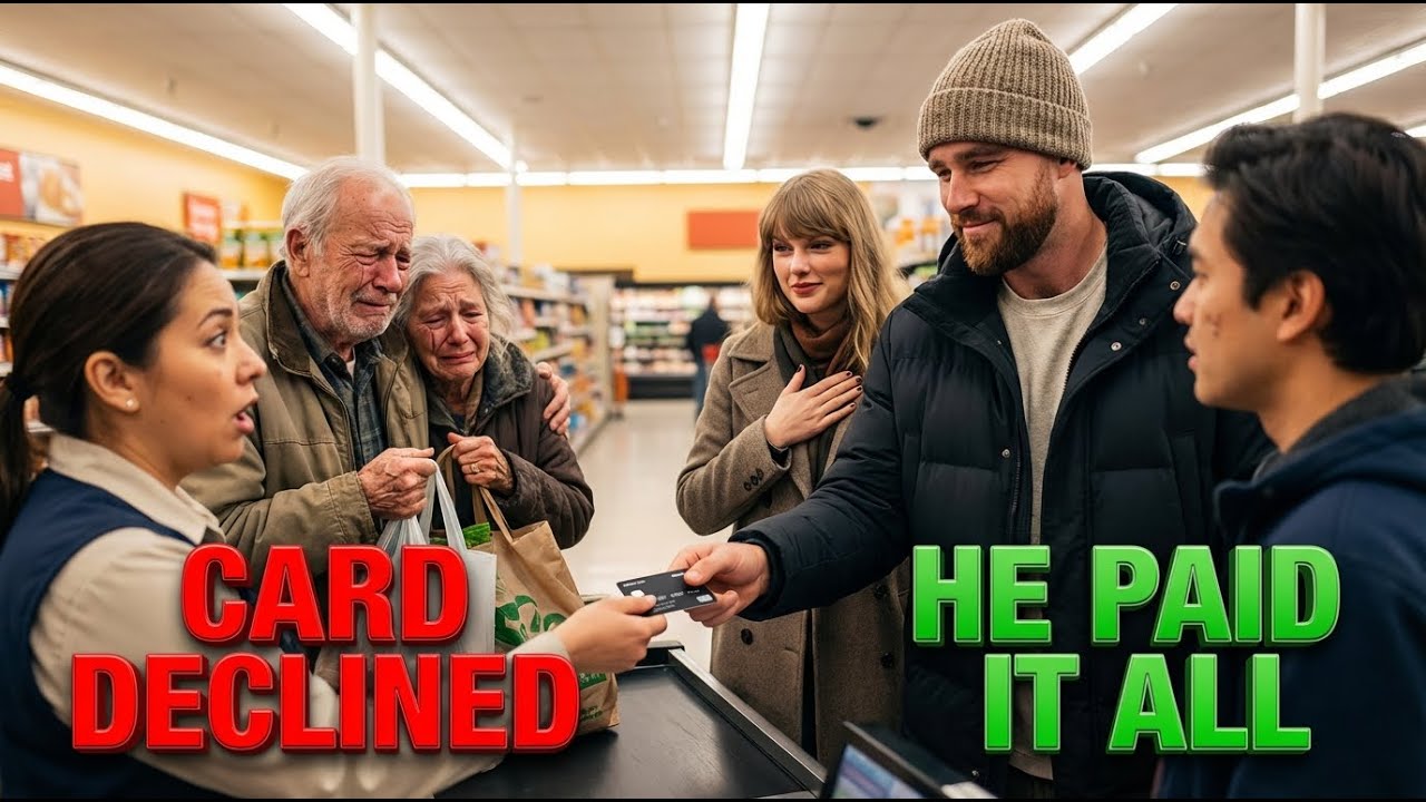 When Taylor Swift and Travis Kelsey heard an elderly couple at the grocery store checkout say, “Our cart isn’t working. Let’s put some things back.” They exchanged a look, and what Travis said to the cashier next would move everyone in the store to tears and applause. It was Saturday afternoon, December 27th, 2025, and Taylor Swift was experiencing one of her favorite simple pleasures, post Christmas grocery shopping like a normal person.