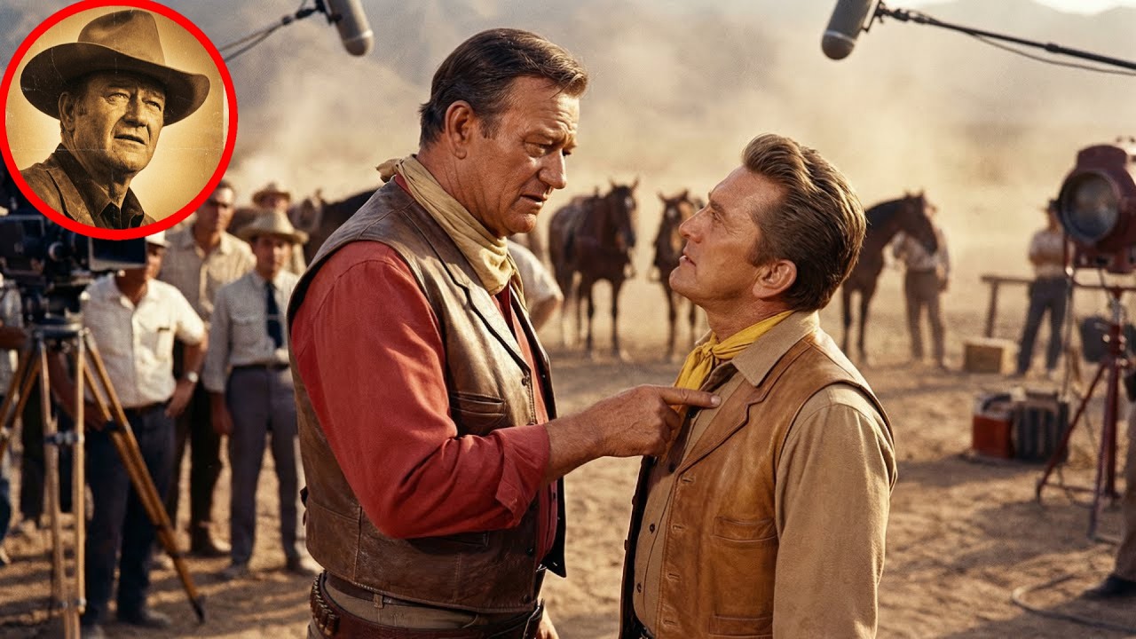 Wayne set the standard. And that standard was simple. Show  up on time. Do the work. Douglas had broken it. And Wayne had just taught him a lesson. Filming that day was ice cold. Wayne and Douglas did their scenes,  professional, mechanical. But between takes, Wayne walked away.  No conversation, no jokes, just silence.
