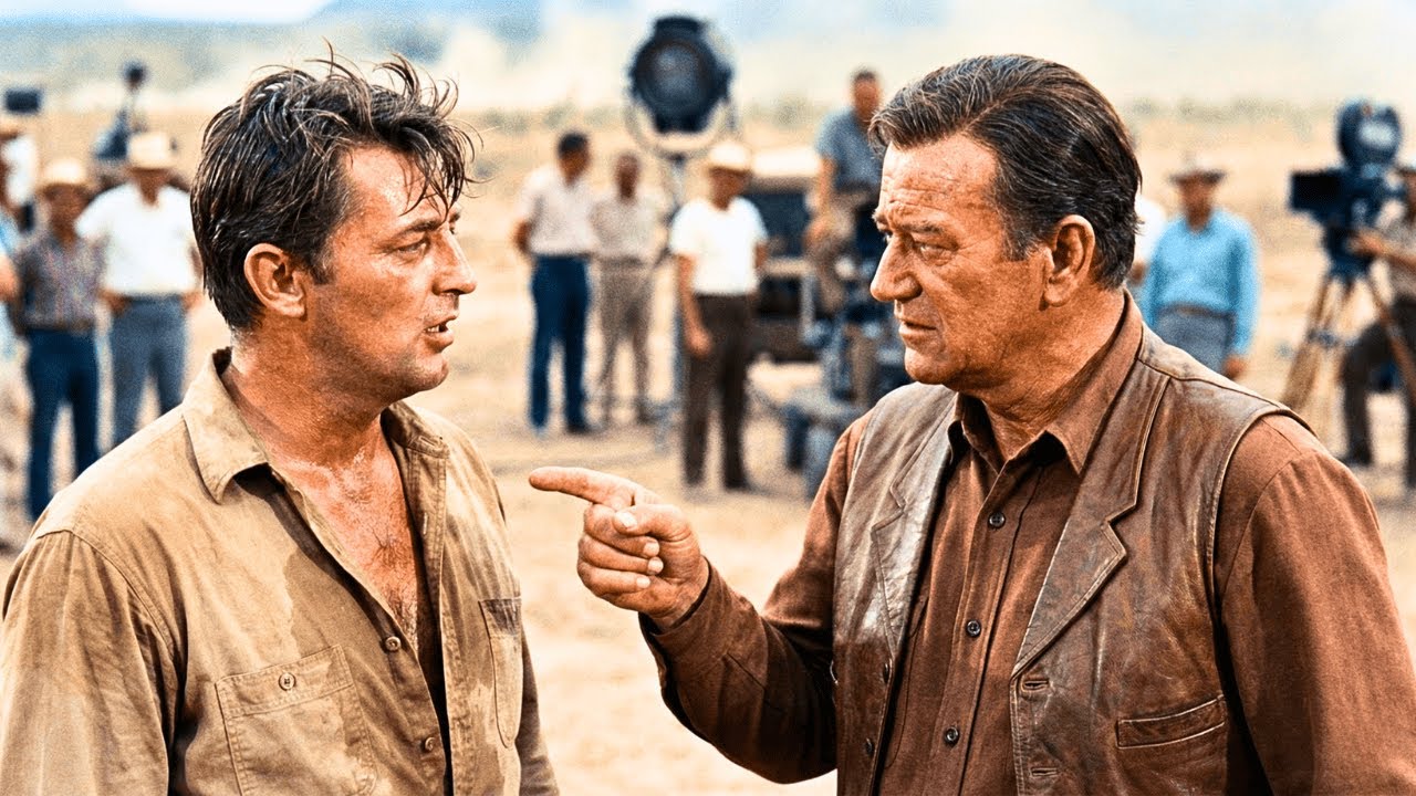 Mitchum opened his mouth to protest. Wayne was already walking toward the row of trailers parked 50 yards from the main set. Didn’t look back, didn’t ask, just walked. And the gravity of that walk pulled Mitchum along behind him. The crew watched them go. Nobody spoke. Frank stood there with coffee soaking into the dirt near his boot, and he didn’t move to clean it up.