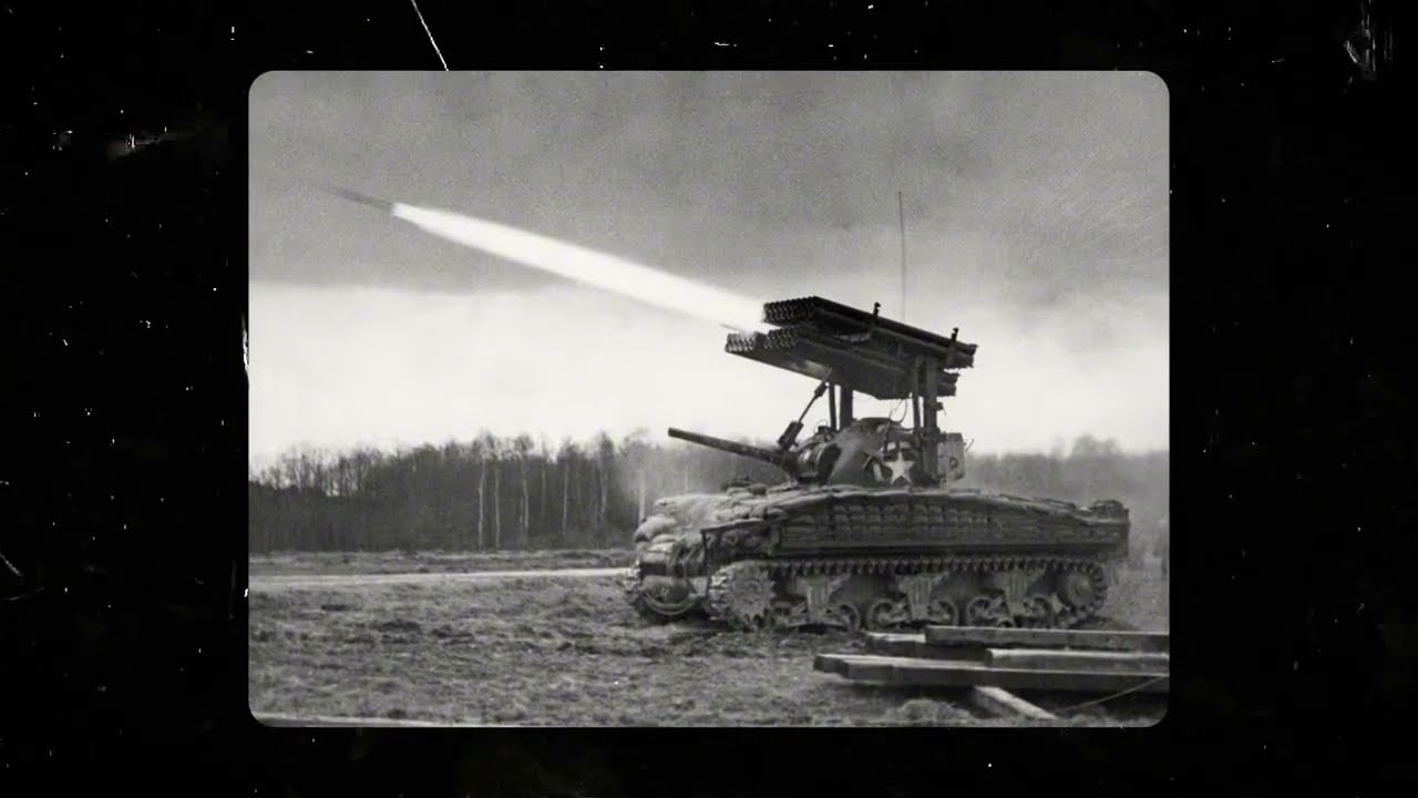 [music] and what he found there became the basis for the weapon that was to be America’s answer to the Reich’s army. This is the story of how the most technologically advanced army in the world fought with rockets made from discarded fire extinguishers. This is the story of Colliopy. A tank that looked like a musical instrument sounded like a banshee and turned its own crew into a target for every German gunner within a kilometer.