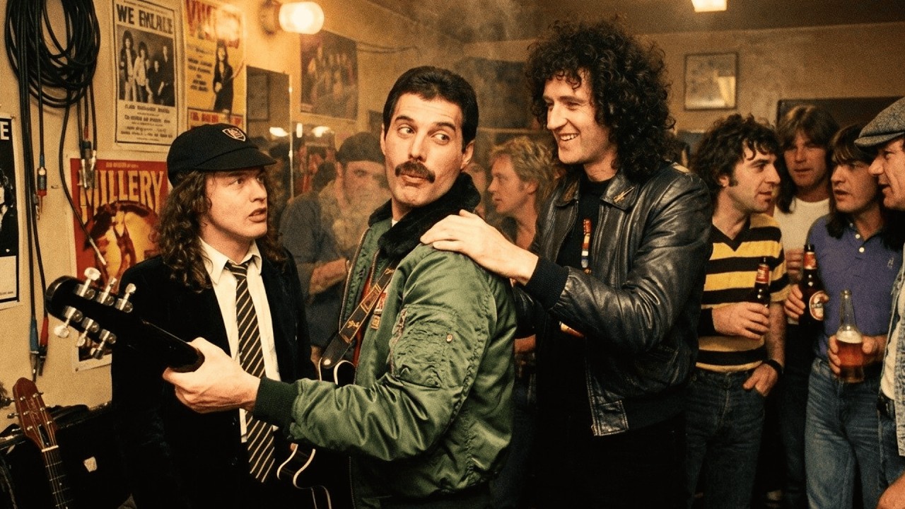 But we are not at that moment yet. Something happened first that nobody expected. When Freddy arrived, the atmosphere was warm but cautious. A CDC were raw, stripped down rock and roll power. Queen were theatrical and grandiose. On paper, they should not have gotten along. But Angus and Freddy connected immediately, talking about touring, fame, and the loneliness of being surrounded by thousands yet feeling misunderstood.
