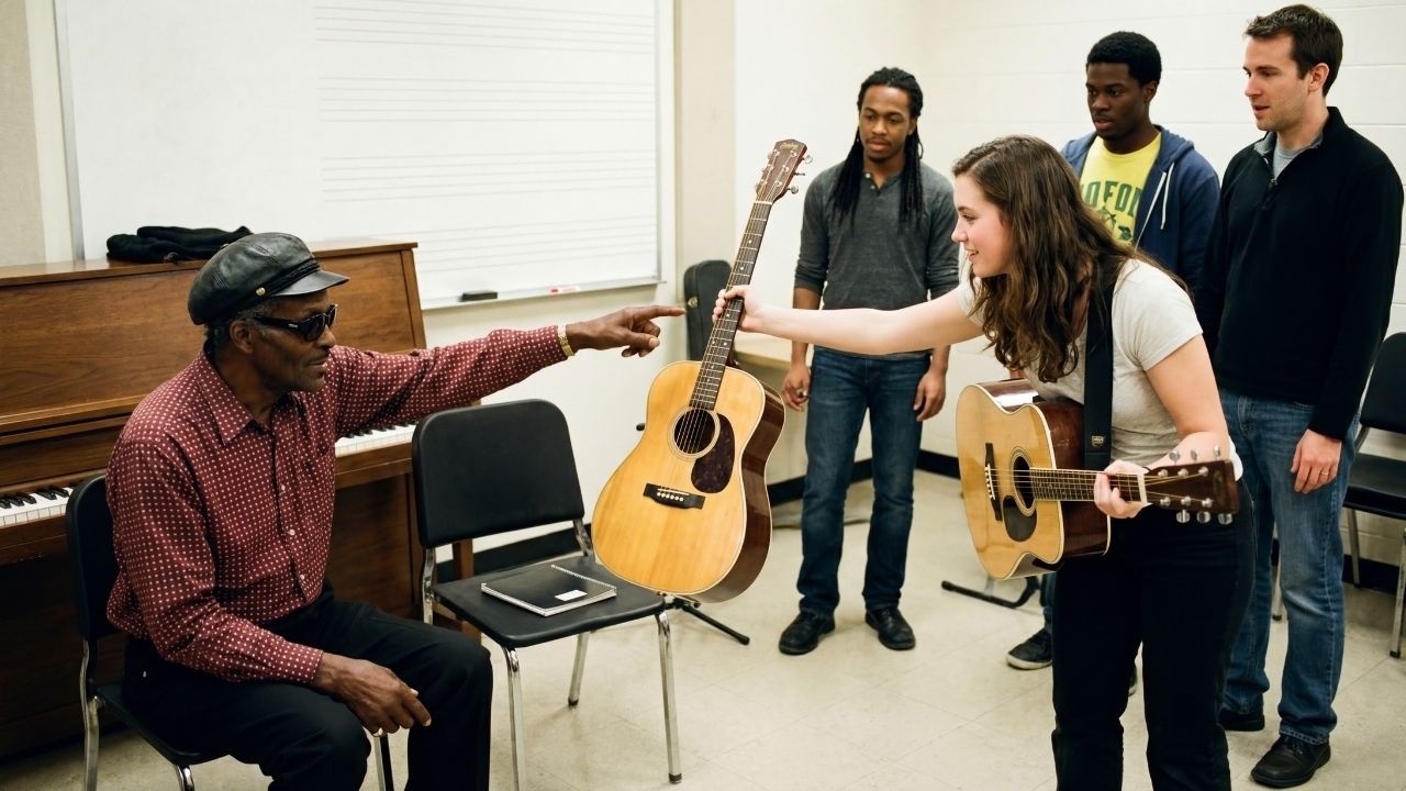 Two of them were having a whispered argument about something that had nothing to do with music. He was, in the language of teachers everywhere, having one of those days. Chuck Berry had slipped into the back of the room at 10:02. He was 53 years old and he was not there to be a student. He was there because a young musician he had been informally mentoring, a 19-year-old guitarist named Marcus Webb, who sat in the third row and had genuine ability buried under a layer of self-consciousness that was going to take time to excavate, had asked him to
