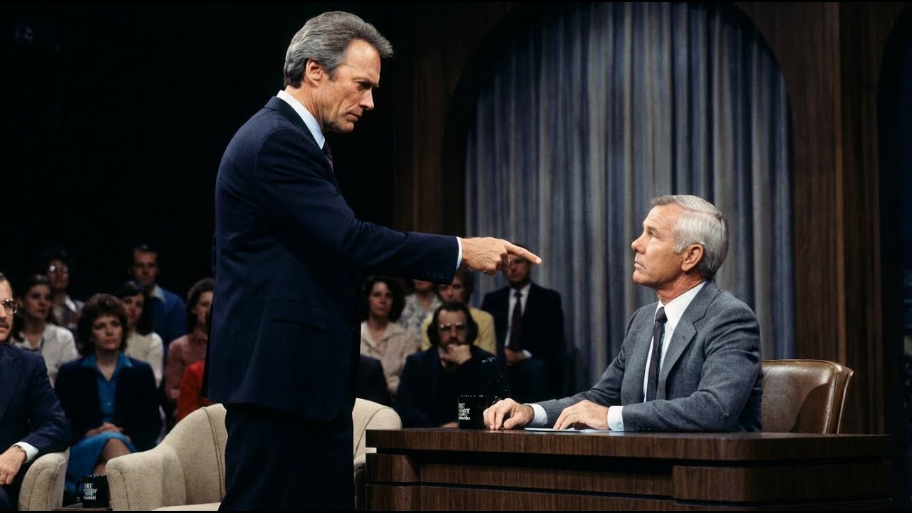 That’s what separates men from boys. The studio was so quiet you could hear the air conditioning. Johnny stood there, his face red, unable to speak. This was his show, his stage, his kingdom. And Clint Eastwood had just taken control of it with nothing but words and presence. Clint took a step back.