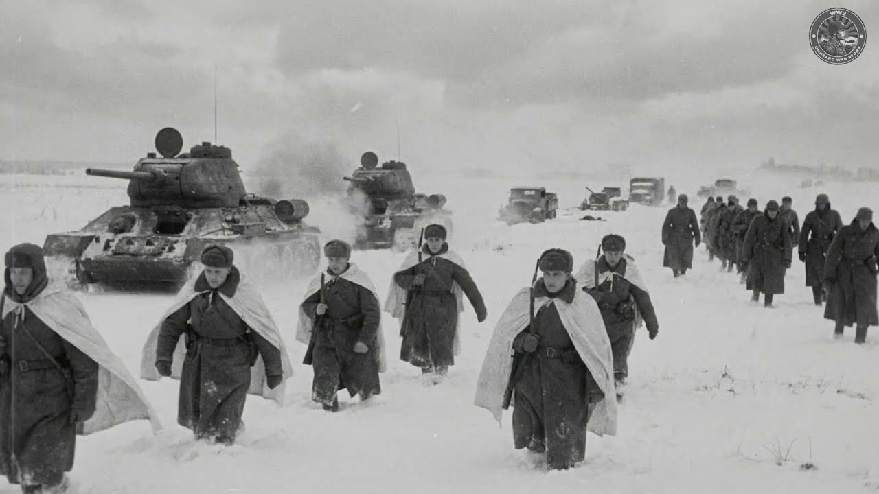 Temperatures dropped to minus30°. German soldiers who had been promised a quick victory were freezing in summer uniforms. Their tanks wouldn’t start, their weapons jammed, and then Zhukov attacked. The Soviet counteroffensive caught the Germans completely by surprise. For the first time in the war, the Vermacht was forced into full retreat.