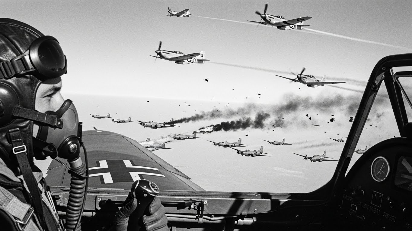 The sky is a hard, brittle blue, the kind that makes engine noise carry for miles. Inside the cockpit of his Messerschmitt Bf 109G, Hauptmann Karl Brenner tightens his oxygen mask and watches the black dots ahead of him slowly grow larger. American bombers. Again.