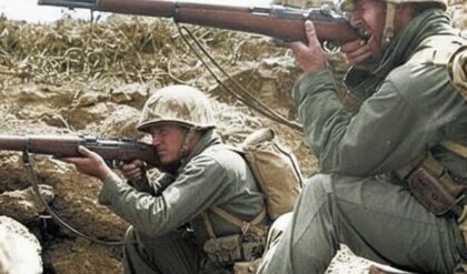 M1917 machine guns, the same design that had dominated European battlefields a generation earlier, now cut down German soldiers with methodical precision. The attacking force, which had seemed unstoppable moments before, suddenly found itself trapped in a killing zone with no escape route.