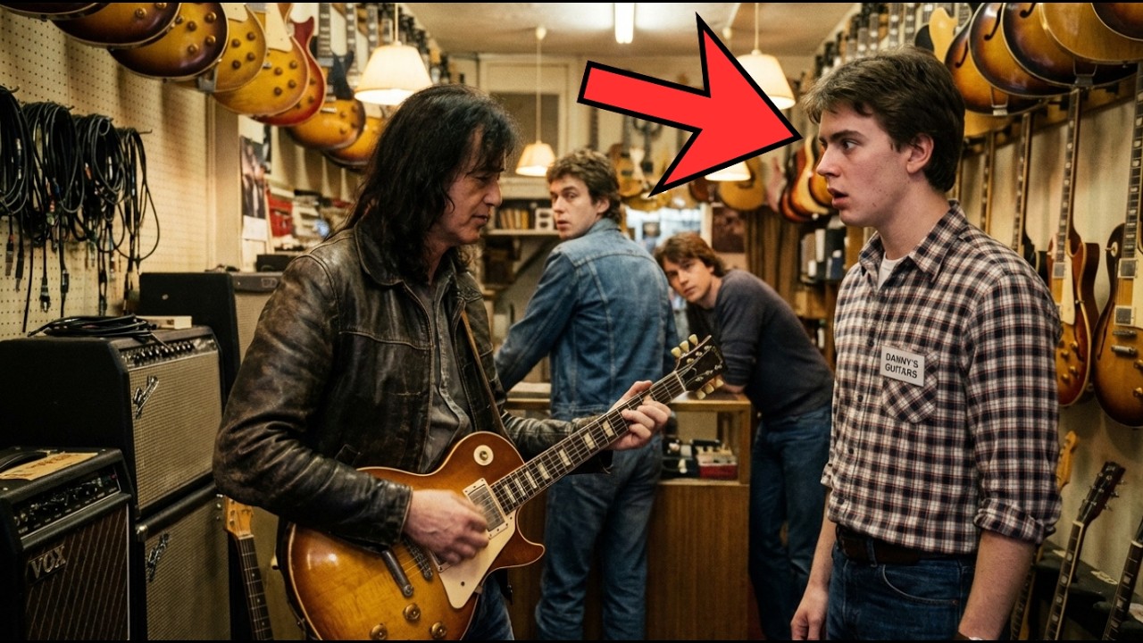 It was October 15th, 1982, and London’s famous guitar street was quieter than usual. The stranger kept his head down, long dark hair partially hiding his face as he stepped into the cramped shop filled with vintage instruments. The shop owner, 23-year-old Danny Morrison, looked up from restringing a Fender Telecaster.