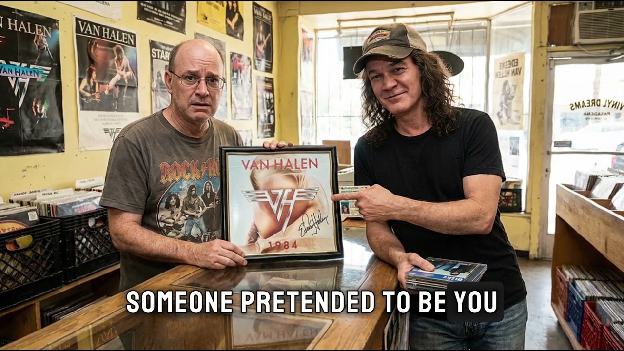 Are you some kind of handwriting expert? I’ve been collecting records for 30 years. I know a real signature when I see one. Eddie reached into his wallet and pulled out his driver’s license. He slid it across the counter to Dennis. Dennis looked at it. The name read Edward Van Halen. Dennis looked at the driver’s license photo, then at the customer standing in front of him, then back at the photo, then at the framed album on his wall, then back at the customer.