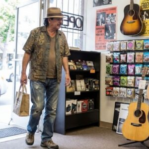 The small bell above the door of Martinez Music Store in San Francisco’s Mission District chimes softly as Carlos Santana entered on a quiet Thursday afternoon in September 2017. Looking for a new set of medium gauge strings for his…