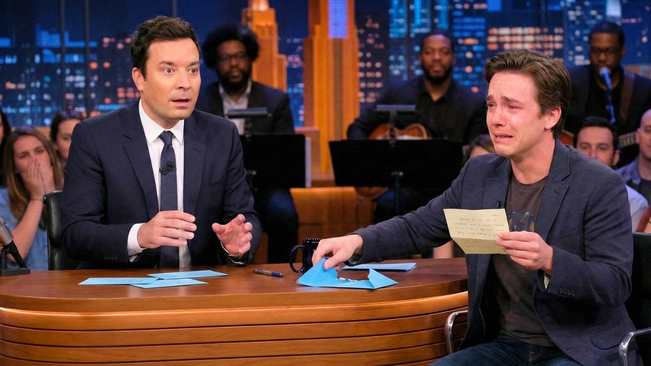 The cameras were live. Hudson Williams stopped mid-sentence. He reached across Jimmy Fallon’s desk, took a small blue envelope, and everything changed. It was a Tuesday night in October. The Tonight Show starring Jimmy Fallon. Studios 6A at Rockefeller Center. Another packed audience, another celebrity interview, another night of laughter and music and the carefully orchestrated chaos that had made Jimmy Fallon America’s favorite late night host.