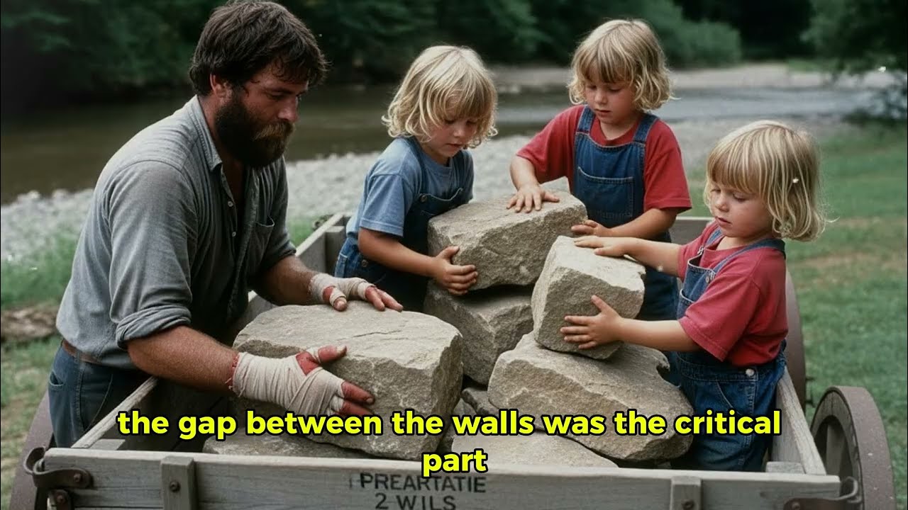 You building a shed? One passing traveler asked. A cabin for who, children? Adults can’t stand up in that. But Samuel’s plan didn’t require tall walls. The walls were double- layered. Inner wall of vertical split logs that he’d spent two weeks cutting and shaping, then a 6-in gap, then an outer wall of horizontal logs.