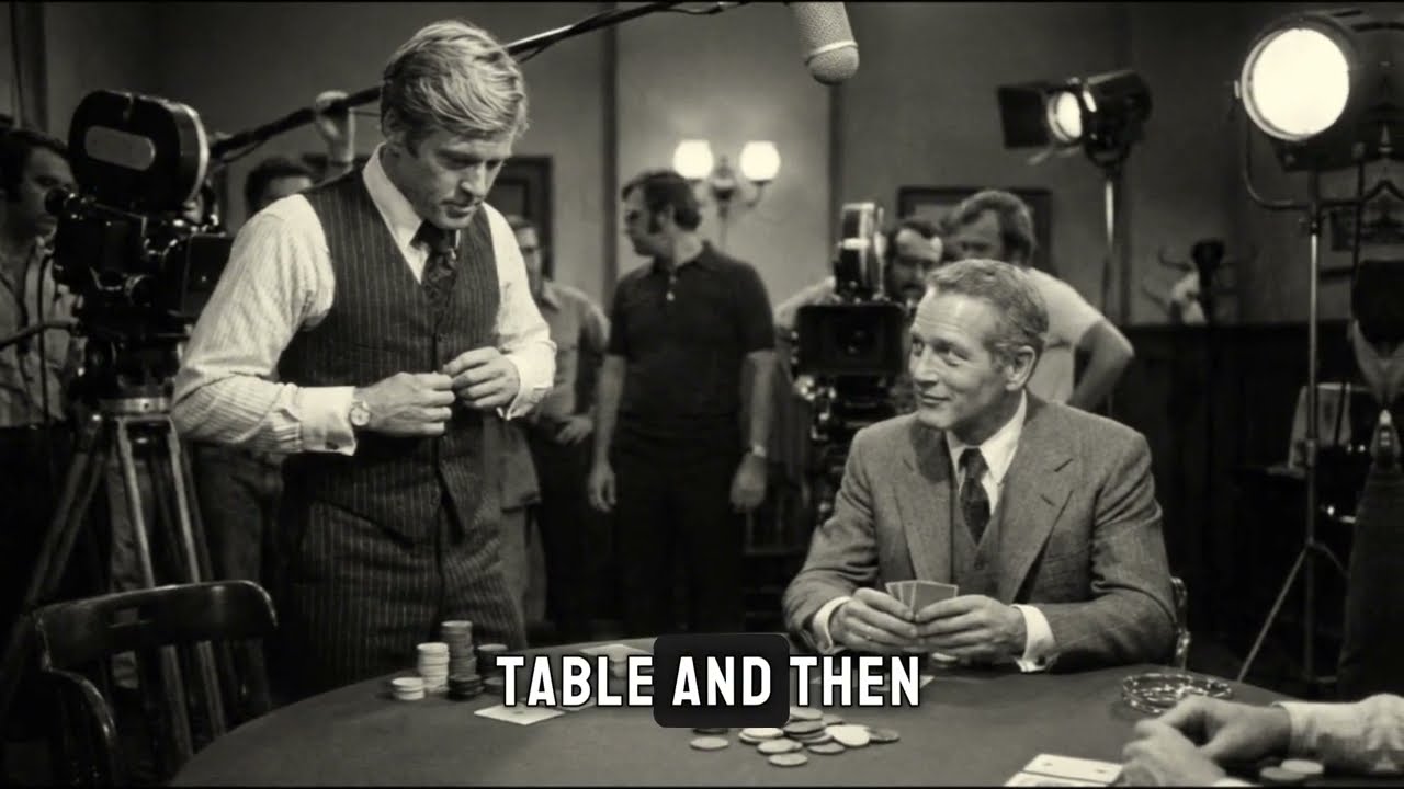 No smiling, no jokes, pure drama. Both actors nodded seriously. George called for final touches. Makeup did last minute powder. Sound checked levels. Lighting adjusted the key spots. Places everyone. Newman took his seat first. Across the table left side, he arranged his poker chips, picked up his prop cards.