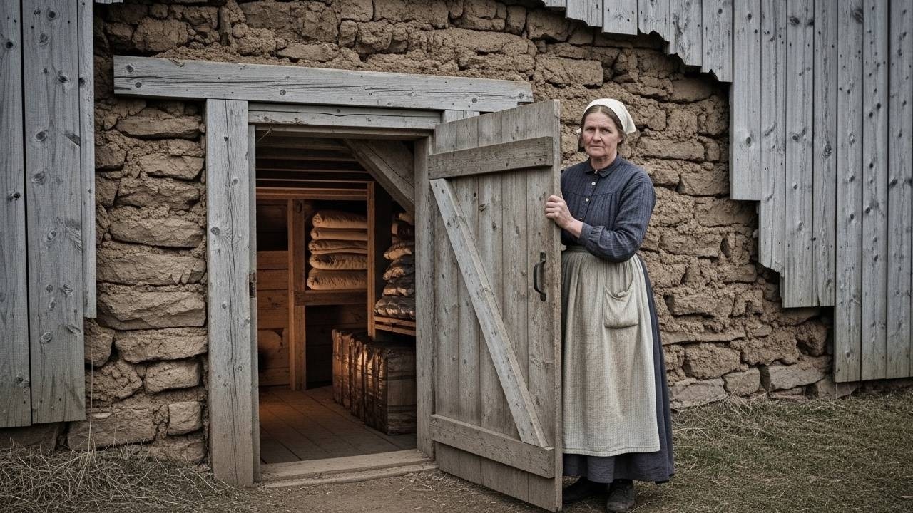 Inside, she’d installed a small sheet iron stove with a flu that vented through the barn’s main chimney. She’d stocked 6 months of provisions: salt pork, wheat, cornmeal, preserved vegetables, dried apples, smoked venison, 60 lb of coffee. She’d added blankets, medical supplies, lamp oil, candles, matches, and waterproof tins, and tools for repairs.