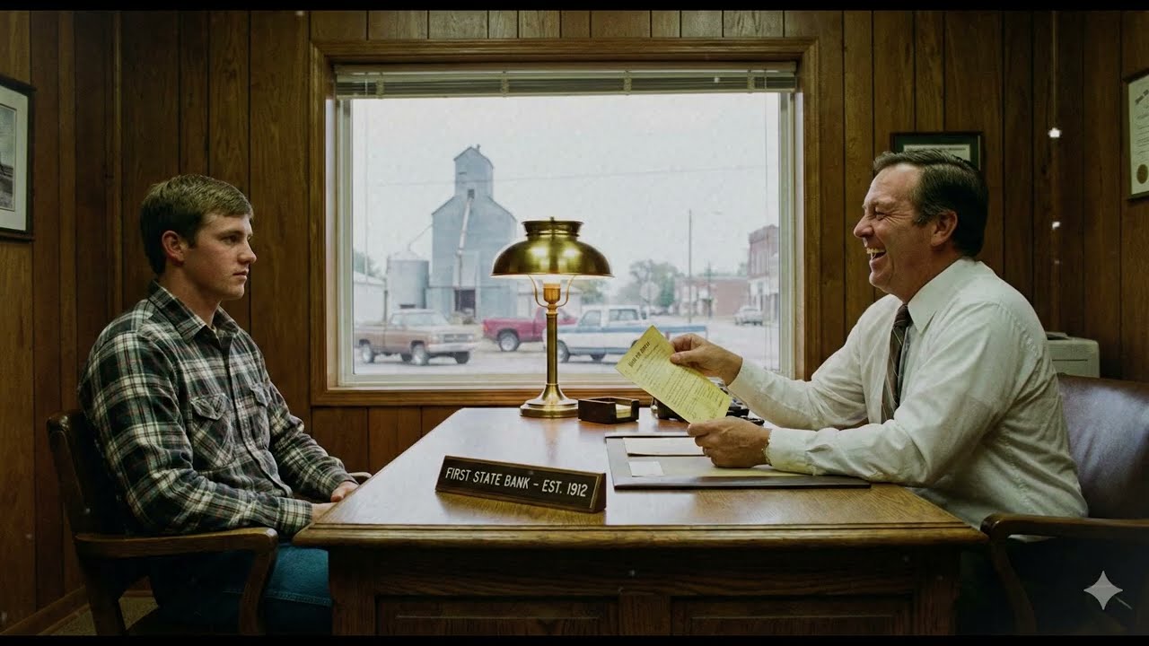 Realistically, this land might sell for $350 an acre, maybe less. You’re asking me to lend $12,000 against $28,000 worth of sand. It’s not sand. It’s farmland. It’s marginal farmland. And you have no farming history, no operating statement, no track record. You’ve been working at the grain elevator. I grew up on a farm. Growing up on a farm and running one are different things.