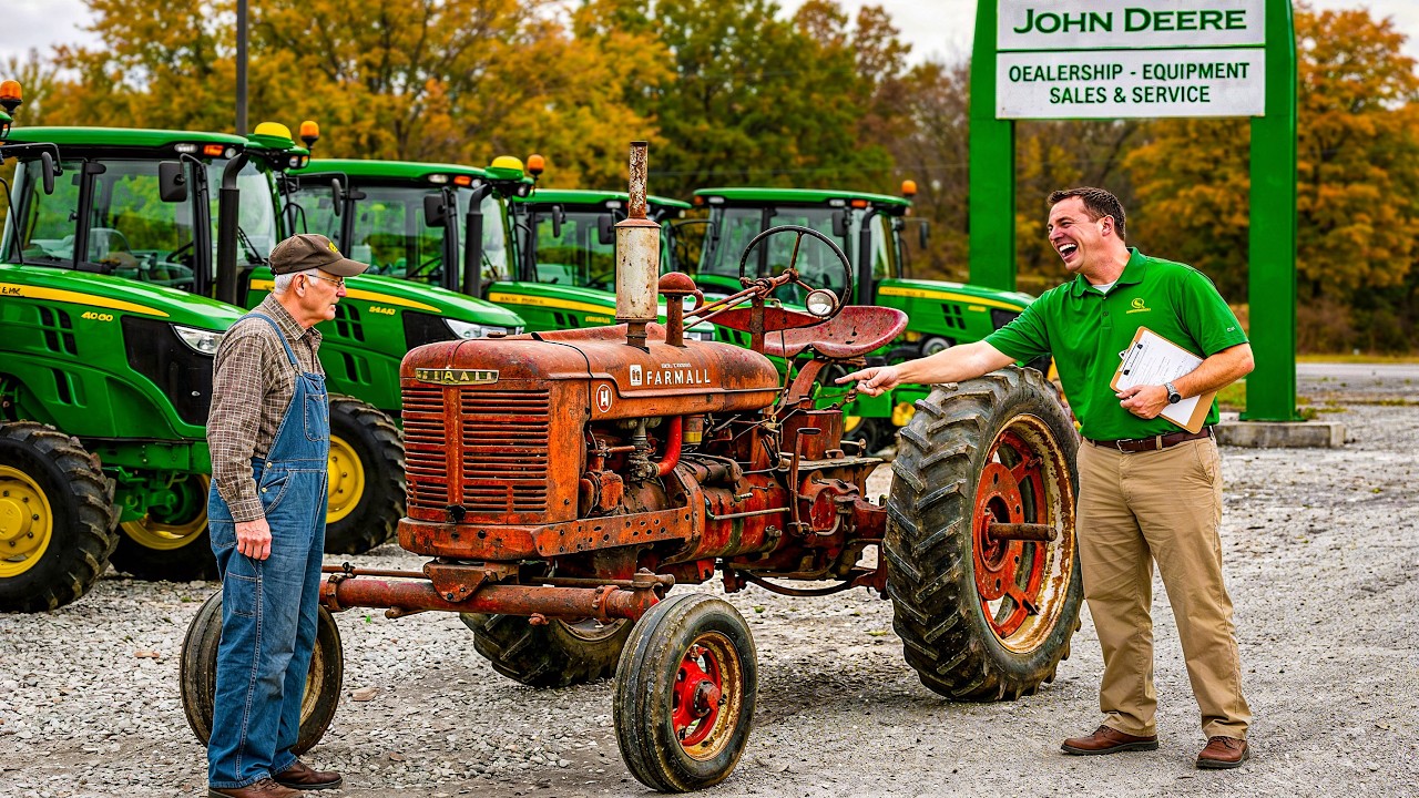 Price tags still hanging from the steering columns like they’d just come off the truck. Earl parked at the edge of the lot. He climbed down slowly. The way a man climbs down from something he’s trusted for 30 years. He walked inside. The man behind the counter was Gary Denton, 38 years old, third generation John Deere dealer, clean green polo, the kind of man who knew every farmer in the county by name, by acreage, and by credit score. He glanced up, recognizing him.