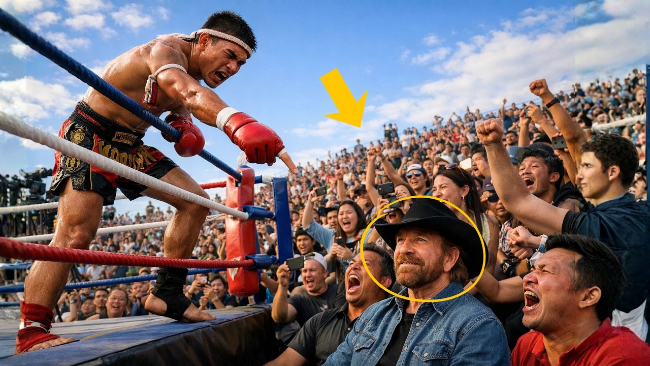 The promoter walks over and lifts the microphone. Sir, what is your name? The man takes it calmly. His voice is low, steady, unmistakably composed. Chuck Norris. No big response follows. The name means little to the Thai crowd. Little to the tourists, little even to most of the journalists in that moment. To them, he is simply another foreigner, another outsider.