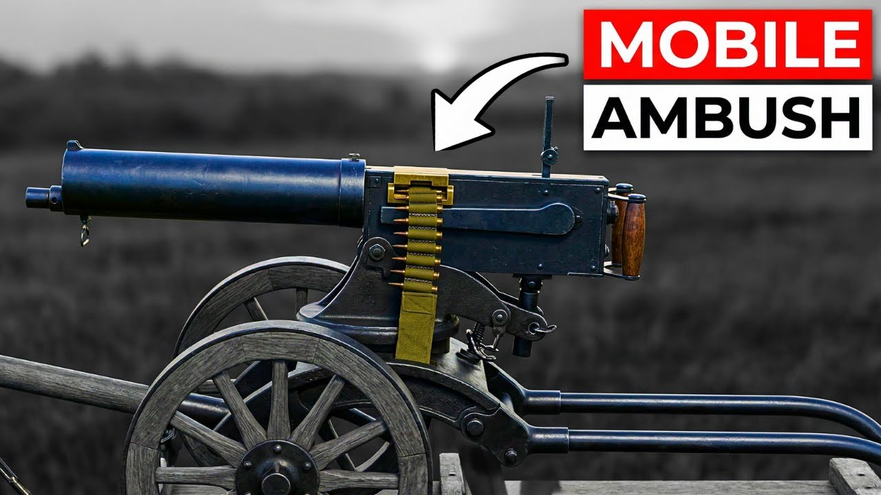 The sound was catastrophic. 500 rounds per minute poured into the side of the convoy. Canvas shredded. Wood splintered. Men who had been laughing seconds before were torn apart before they could even understand what was happening. The cart raced down the length of the convoy. The gunner traversing smoothly, methodically working from front to back.