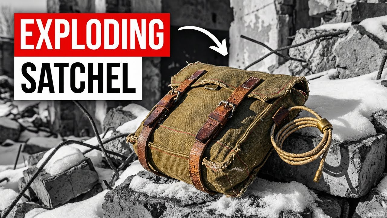 And this satchel contains his death. The bag itself is deceptively simple. Weathered olive canvas reinforced at the stress points with double stitching that has already begun to fray. Two leather straps with brass buckles, the kind salvaged from equipment harnesses. The whole assembly measures approximately 30 cm in length, 20 cm in width.