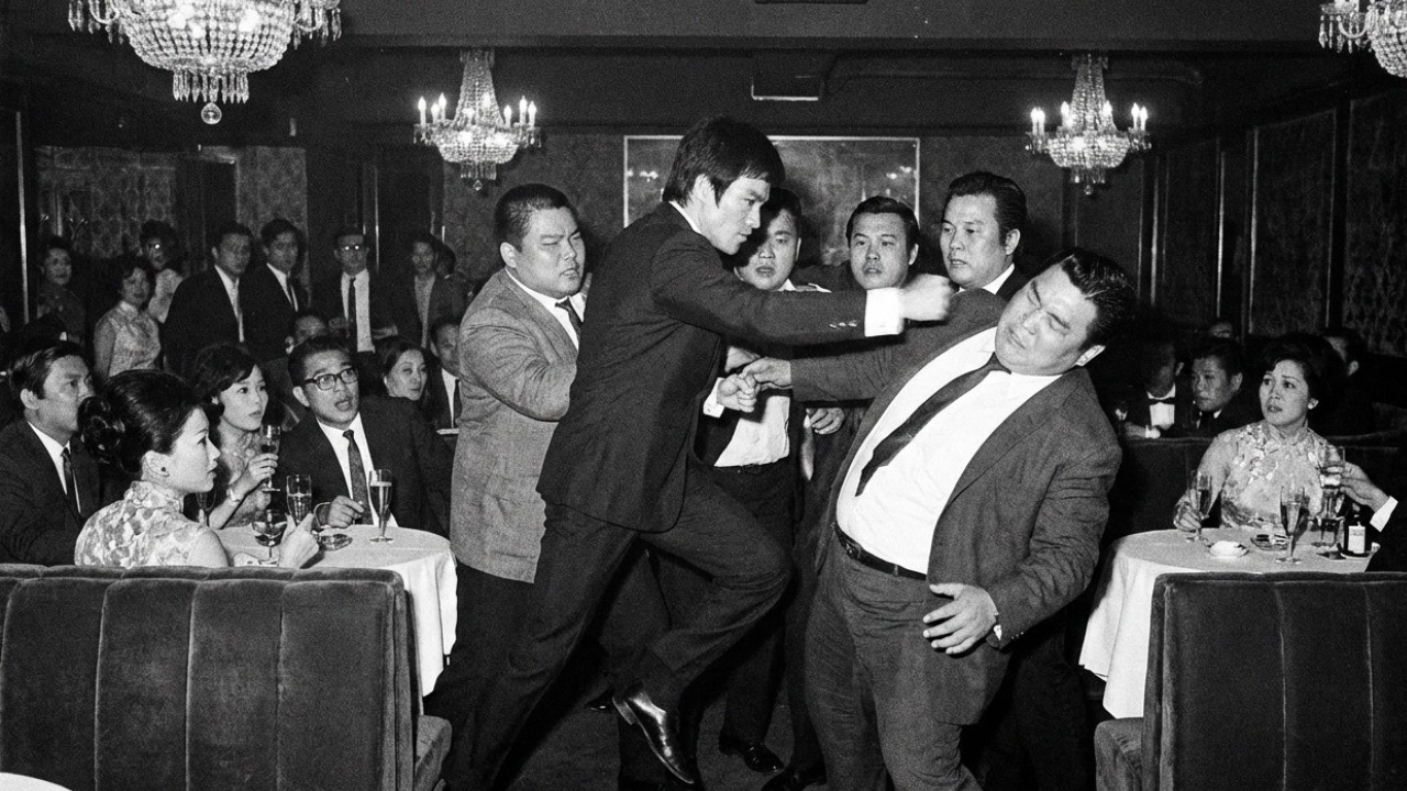 A group of four men at a nearby table recognized Bruce Lee. They wanted to talk. Bruce was polite, shook hands, smiled. But the men had been drinking. One of them got loud, started demonstrating kung fu moves, knocked over a glass. The noise attracted attention. Cheni, posted at the VIP door, stepped inside.