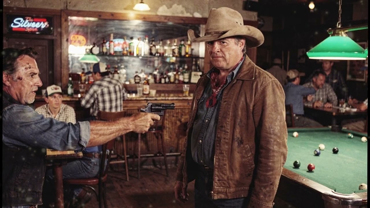 Wayne’s gaze flicked once to the pool table, to the wall behind the gunman, to the scarred accomplice shifting his weight. He calculated not whether he could win, but whether anyone else would die if he didn’t move. Last chance, the gunman muttered. The trigger tightened. What happened next unfolded in less time than it takes to draw breath.