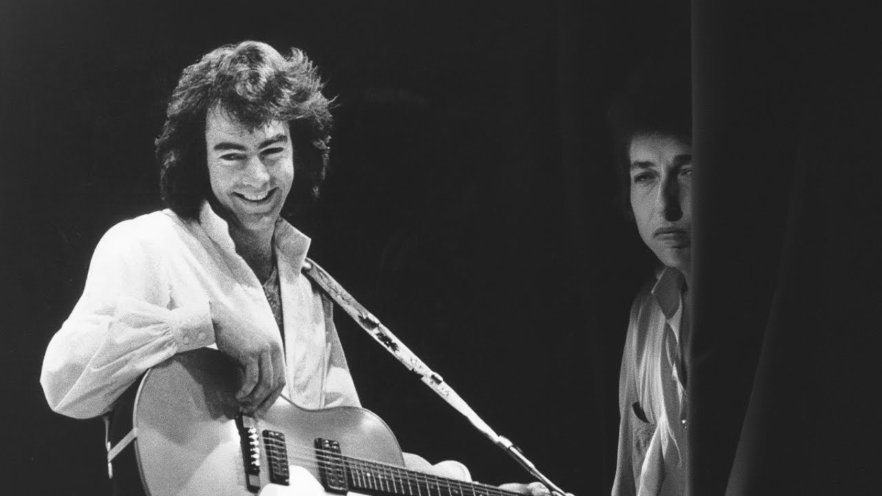 The stage hand came for Neil. You’re on, Mr. Diamond. Time to face the music. Neil walked toward the stage, guitar in hand, heart pounding so hard he could feel it in his throat and temples. He passed Dylan’s group again, and this time he forced himself to make direct eye contact with the folk legend.