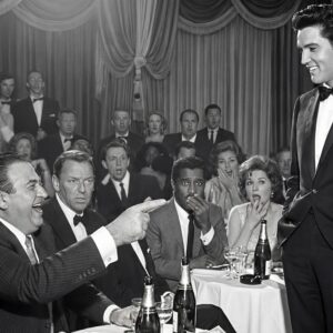 ” But in 1956, that was still just a secret between a boy and his hero. And no one knew that the next time those two names crossed paths, the world would never forget it. The roar from the palladium stage rolled through the corridors like thunder. Elvis had just finished Hound Dog, sweat shown on his neck as he walked off stage, towel in hand, the air buzzing with perfume, flashbulbs, and applause still echoing through the rafters.