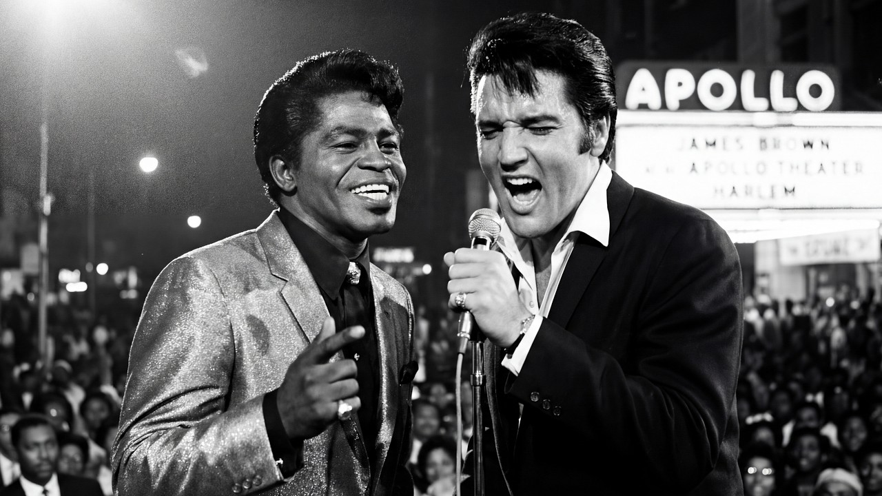 He’d parked six blocks away, collar up, hat down, walking through streets where his white face drew curious stares but no recognition. The Apollo’s marquee blazed, James Brown sold out. Elvis had no ticket, no plan, just desperate hunger to witness something real. The sound spilling from the theater’s walls was unlike anything he’d experienced, even from the records he’d worn thin listening to in his Graceland mansion.