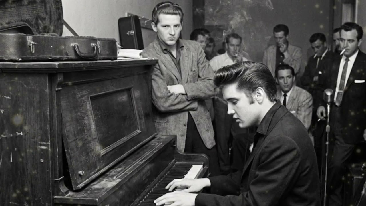 and the idea that Elvis Presley might reveal a depth few had witnessed carried implications far beyond a backstage wager. The murmurss faded completely as Elvis rested his fingers lightly on the keys, testing nothing yet, simply feeling the instrument beneath his touch and Jerry Lee folded his arms, half amused, half expectant, unaware that the challenge he had thrown like a spark in a dry timber was about to ignite something neither of them would forget.