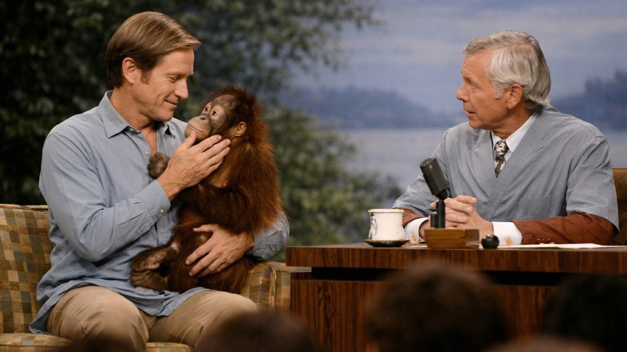 Jim stood and approached the desk and Johnny came around from behind it and they stood there in the soft television light, two men in a quiet studio. And Jim held the orangutan out toward Johnny with both hands. The way you offer something precious and uncertain. San the orangutan, who had not left Jim’s body since the camera started rolling, looked at Johnny Carson for a long moment with those searching dark eyes.