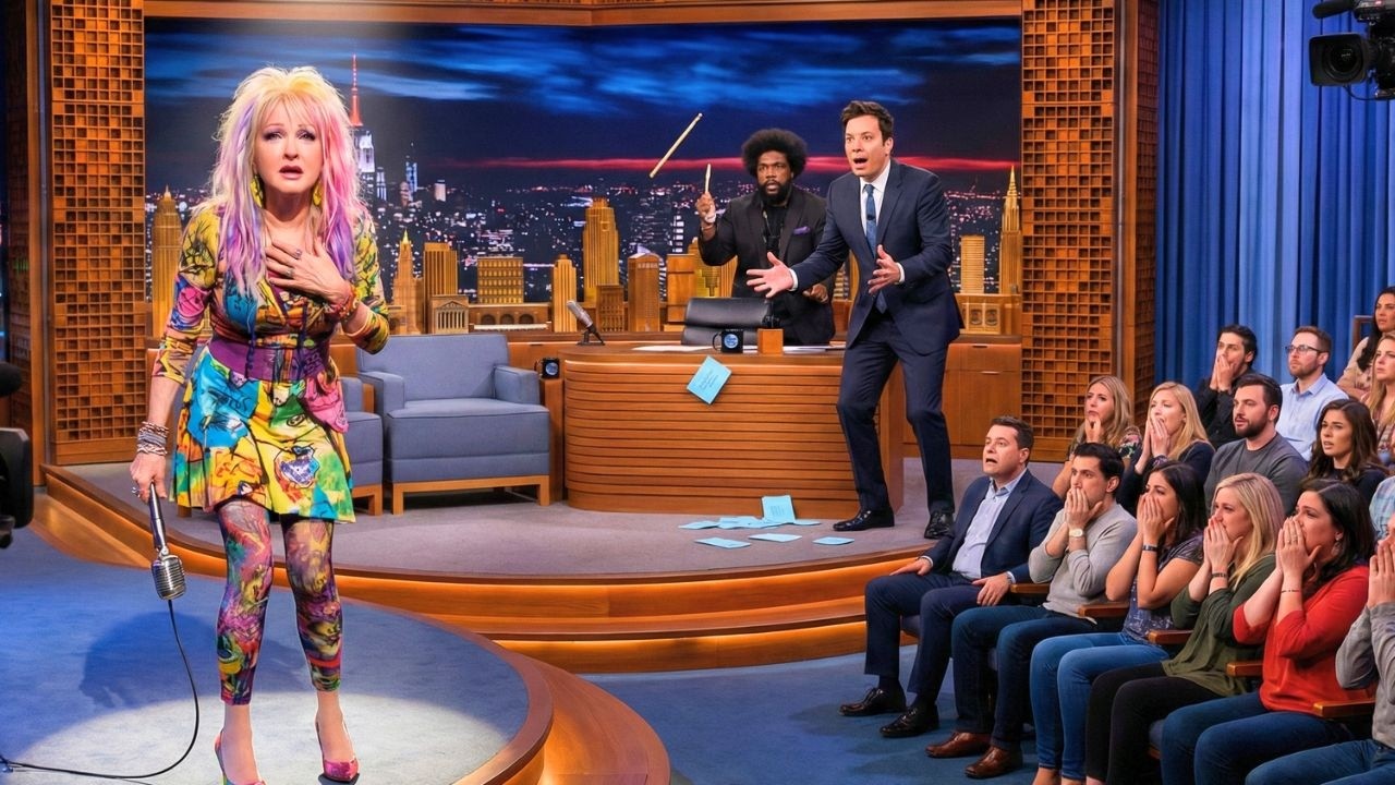 Cameras were live. Cindy Looper’s voice trembled, her eyes filled with tears, and a voice from the back of the studio stopped her completely. It was March 2024, the Tonight Show starring Jimmy Fallon. Studios 6A at Rockefeller Center in New York City. Another Thursday night taping. Another celebrity musical performance.
