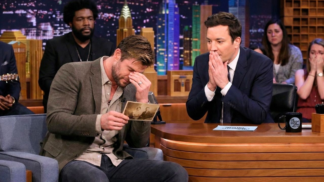 The photograph landed on the desk. Chris Hemsworth’s face completely changed. His eyes closed and he began crying silently and Jimmy Fallon had to stop the show. It was April 2024. The Tonight Show starring Jimmy Fallon. Studio 6B at 30 Rockefeller Plaza. Another Thursday night. Another A-list celebrity interview.