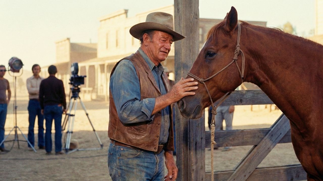 Duke’s hand rested on the horse’s face. His fingers, thick and weathered from seven decades of living hard, traced the familiar contours of dollar’s muzzle. He touched this horse a thousand times, saddled him, brushed him, ridden him through scenes and between takes, but this touch was different. This touch was goodbye. Duke’s jaw clenched.