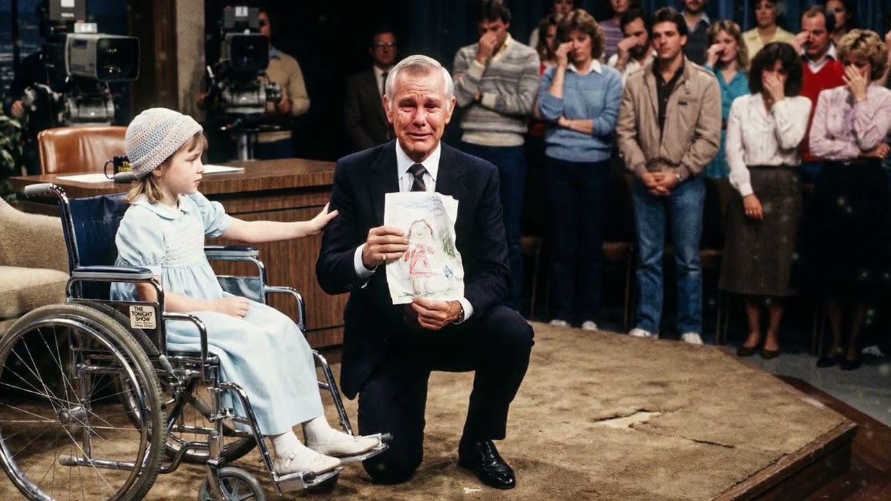 This wasn’t a planned comedy bit. This was a small, fragile child with wide eyes that had seen too many hospital ceilings. Johnny stepped away from his desk immediately. He didn’t wait for applause. He didn’t wait for direction. He walked straight to her and knelt so they were eye level. “Hi there,” he said gently. “What’s your name?” “Emily,” she answered, her voice thin but steady. “I’m eight.