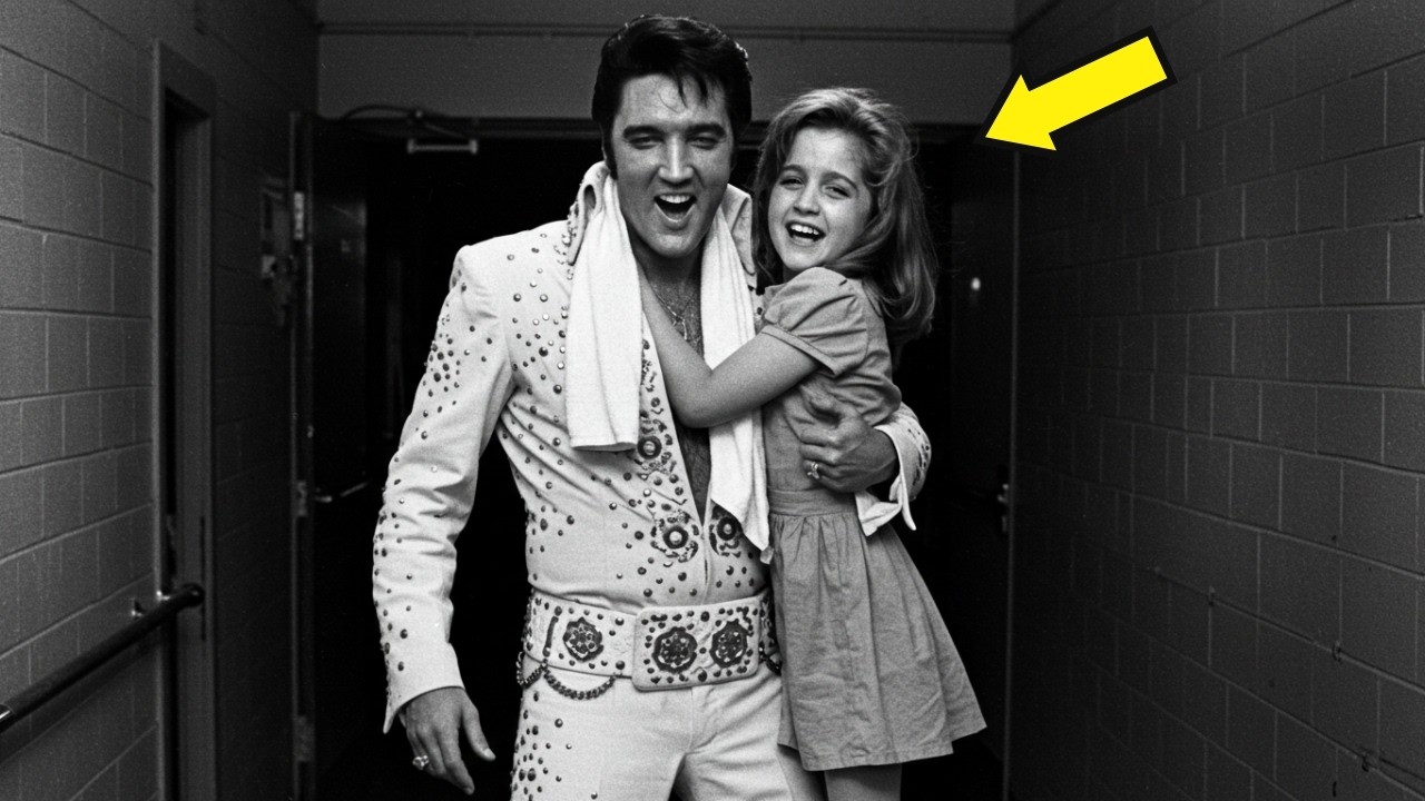 Did she just say? Elvis was already on his feet. The corridor camera flickered, its black and white lens catching a shadow moving just beyond the frame. What it captured next would become one of the most replayed moments in fan history. Because that wasn’t a fan. It wasn’t staff. It was Lisa Marie, 7 years old, holding something folded in her hands.