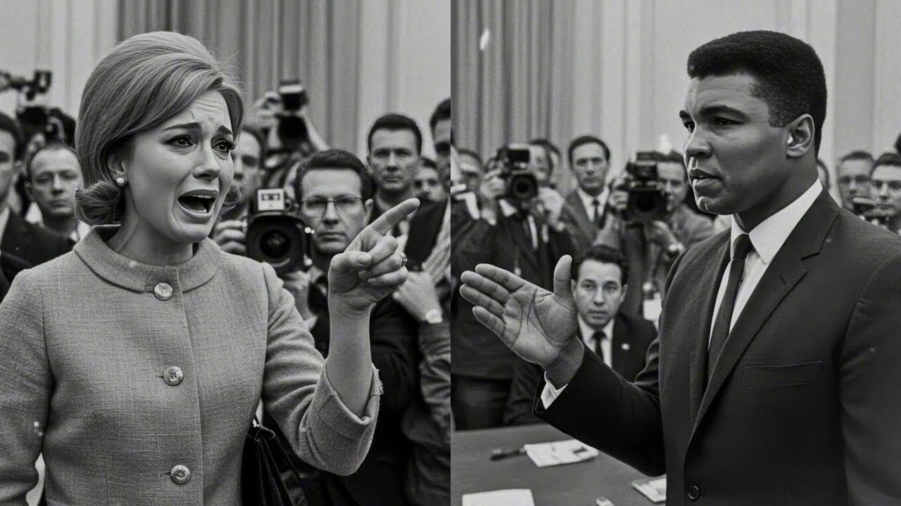 Imagine a room packed with hundreds of reporters. Cameras fixed on the world’s most famous athlete when suddenly a voice cuts through the tension like a knife, accusing him of betrayal, of cowardice, of dishonoring the dead. Every person in that room expected an explosion. His team was signaling to shut it down. The exit was right there.