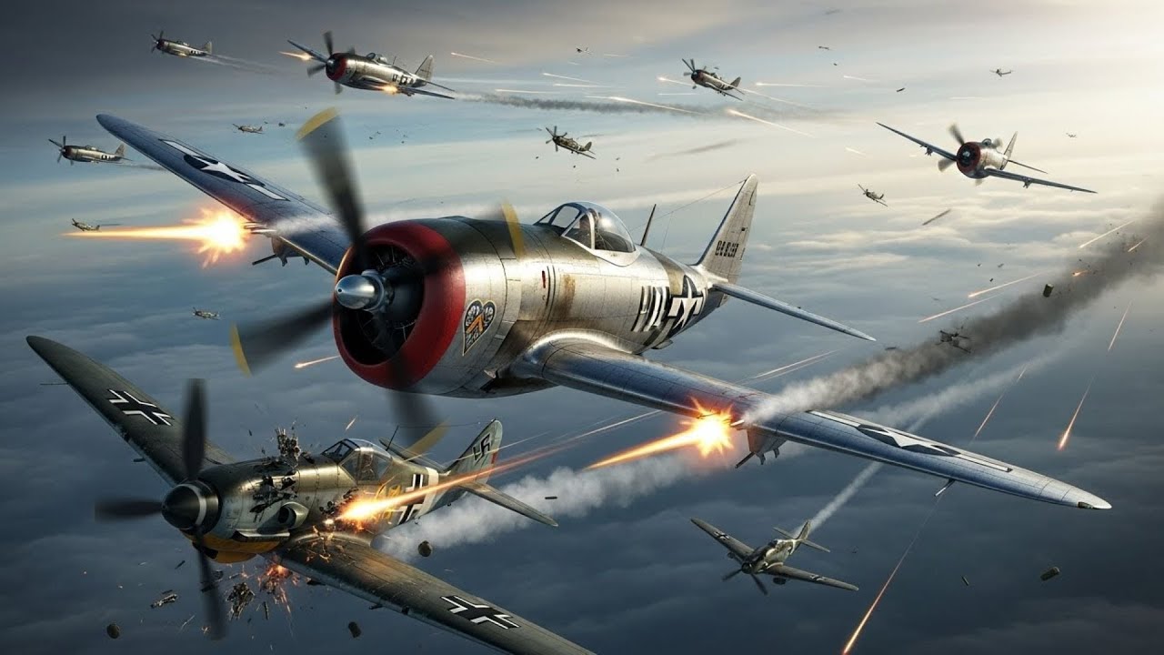 Rather than duel in tight circles, they climbed to the edge of the stratosphere, waited, and struck with the violence of falling steel. They called it boom and zoom. German pilots had another name for it, the moment the sky collapsed. At the bottom of those dives, eight heavy machine guns spoke at once, their streams of fire converging into a six-foot sphere of destruction.