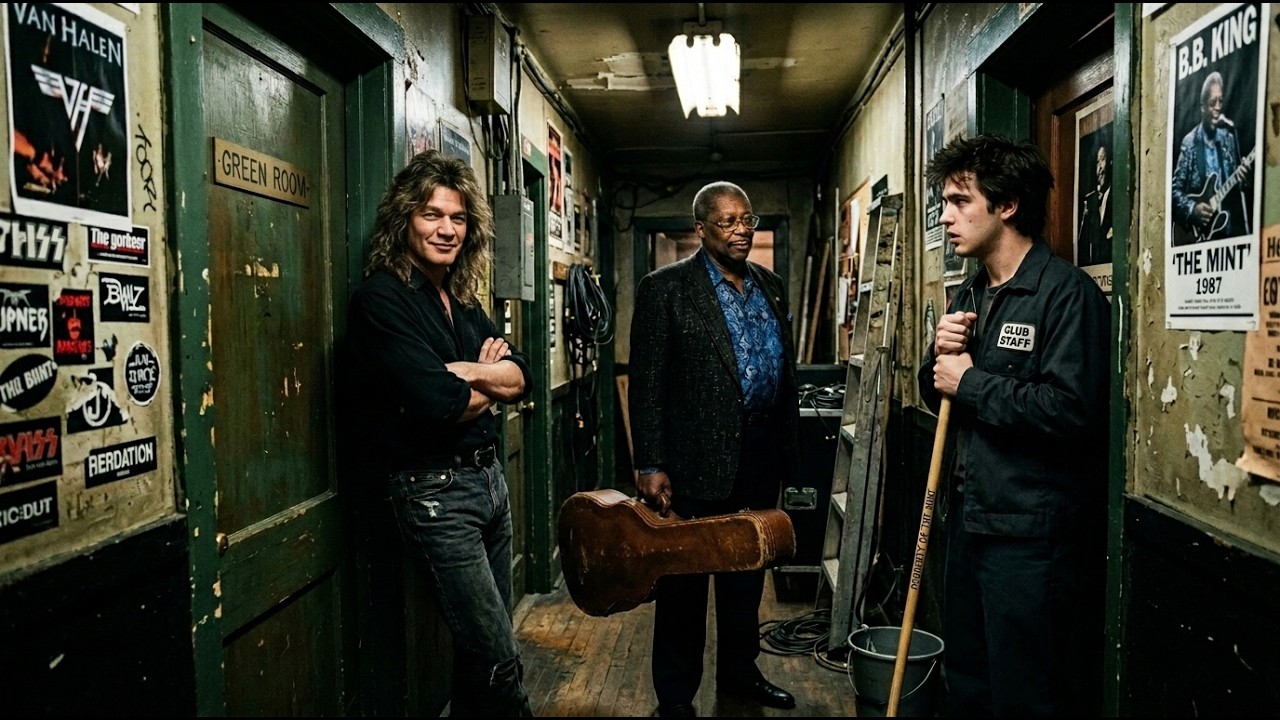 ” He paused for exactly one beat, his voice still carrying no heat, no performance, just the flat weight of accumulated fact. “So maybe put the mop down.” The corridor was completely silent. Curtis Webb lowered the mop. B.B. King looked at Eddie Van Halen with an expression that was composed of equal parts amusement and genuine warmth.