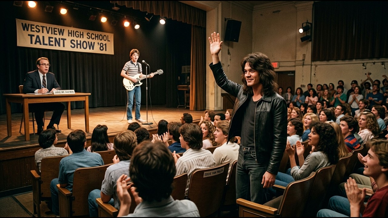 Without urgency, without theater, without needing to interrupt. Eddie Van Halen had that kind of confidence long before the world knew his name. He had it in a high school auditorium in Burbank in November 1981, sitting in the seventh row in a plain jacket, waiting. And a 16-year-old boy who had been about to quit kept going because of it.