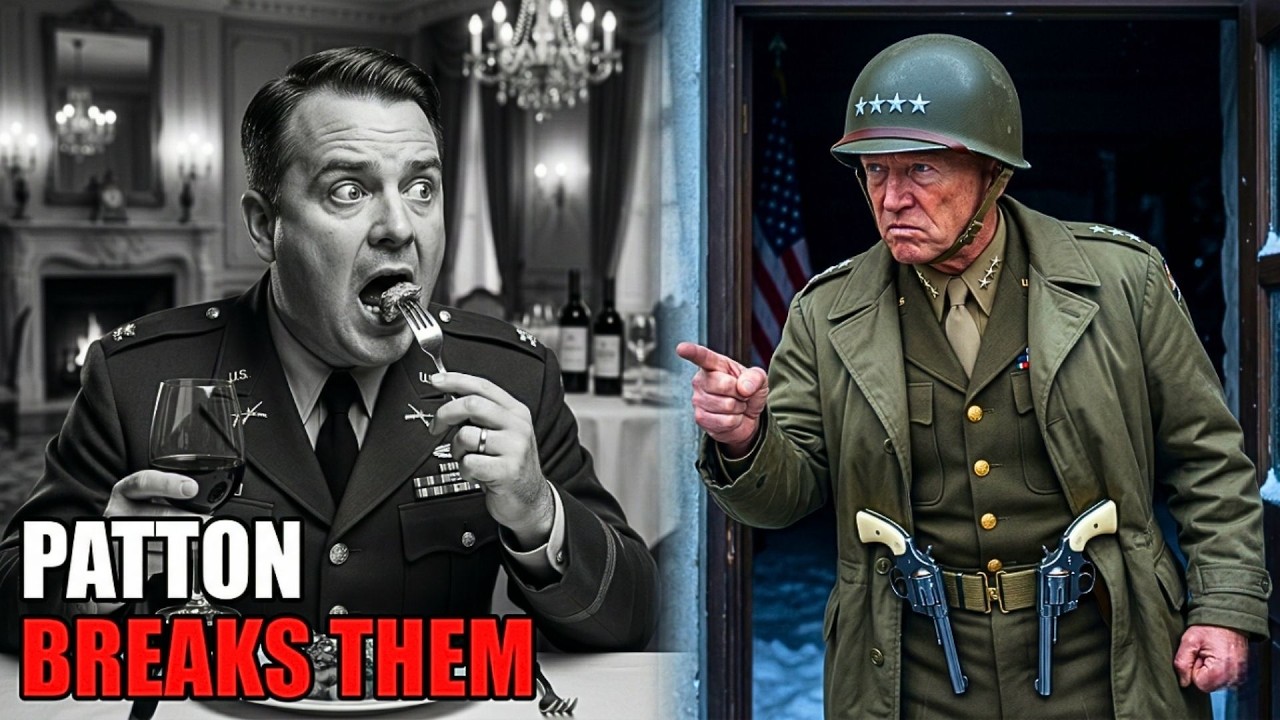 The room went silent, instantly. Every officer froze. Forks stopped halfway to mouths. Wine glasses held in midair. Patton didn’t say anything. Not yet. He just stood there, looking at them, his face completely expressionless. One officer, a colonel, stood up, tried to salvage the situation. “General Patton, sir, we weren’t expecting you.