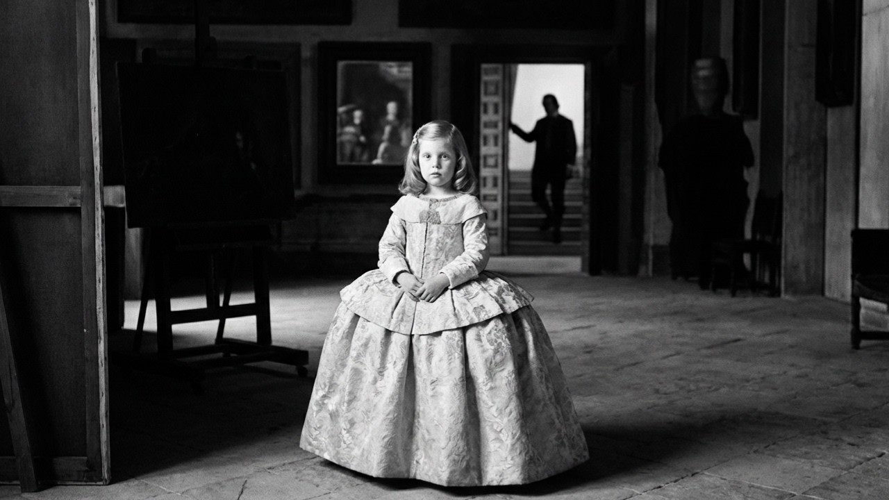 Now look at the painting again. All of it, the full frame, the golden light falling on a 5-year-old princess. The painter at his easel with aostimous honor on his chest. The king and queen fading in a mirror. The maids, the dwarfs, the chaperon, the chamberlain in the doorway, everyone frozen, everyone composed, everyone performing normaly in a court that was falling apart at the genetic level.