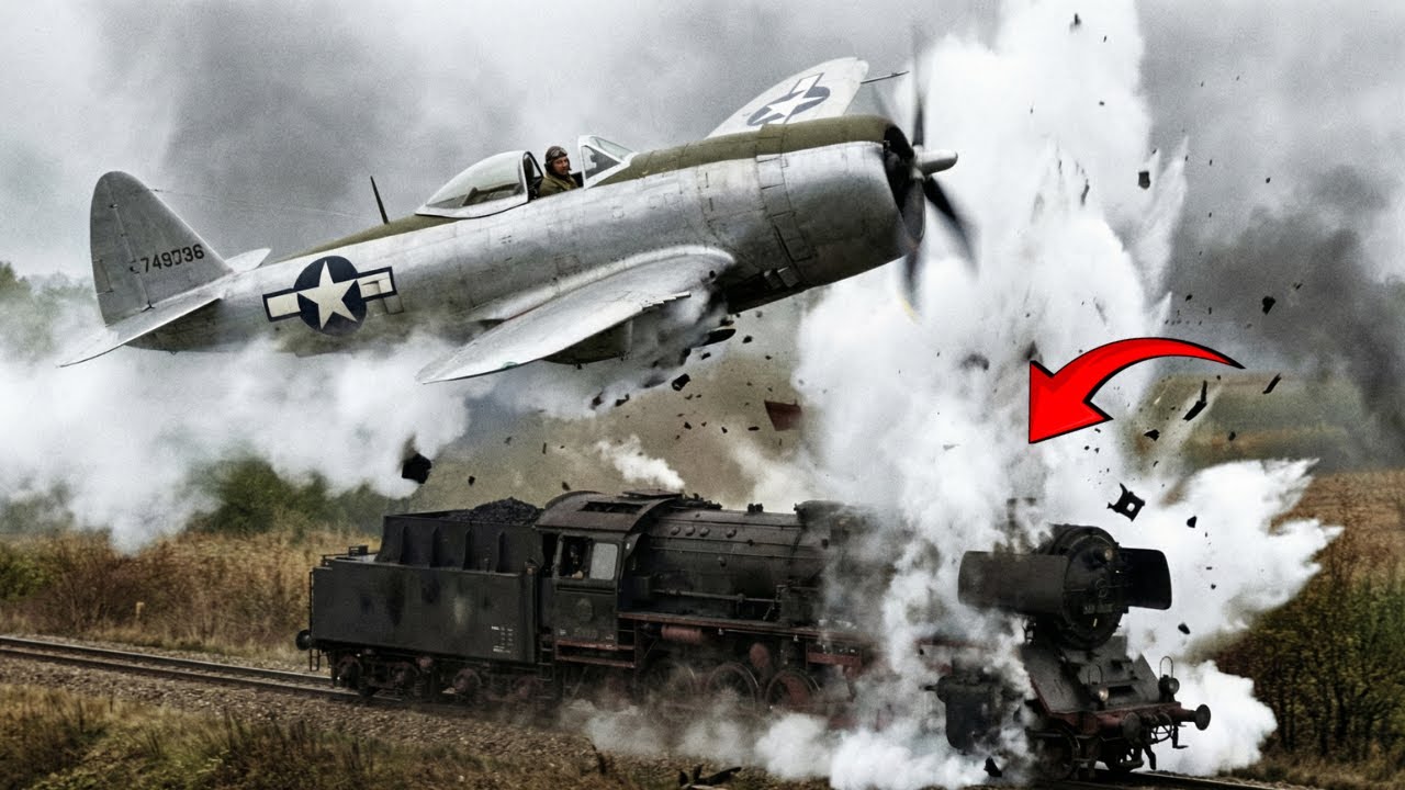 There are reports of P47 pilots landing back at base with their windshields coated in oil and soot from the train they had just destroyed. One pilot found a piece of a piston rod embedded in his cylinder head. He had flown right through the explosion. But the steam was not the only danger. The debris was worse. When a pilot switched from guns to bombs, the danger multiplied.