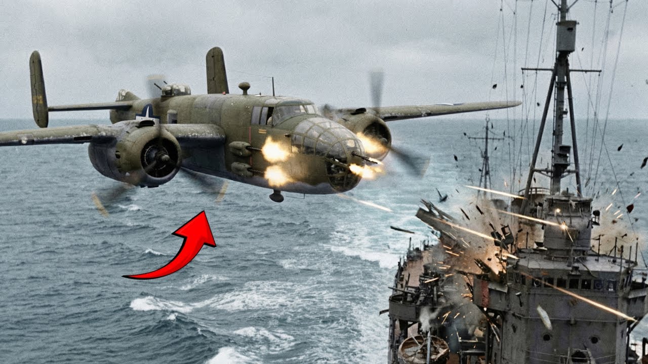 12 aircraft appeared on the horizon. They were B-25 Mitchell bombers, but they did not look like B-25s. The glass noses, usually housing a bombardier and a delicate bomb site were painted over. And where the glass should have been, gun barrels, protruded like the quills of a porcupine. Admiral Kimora’s lookouts barely had time to shout a warning.