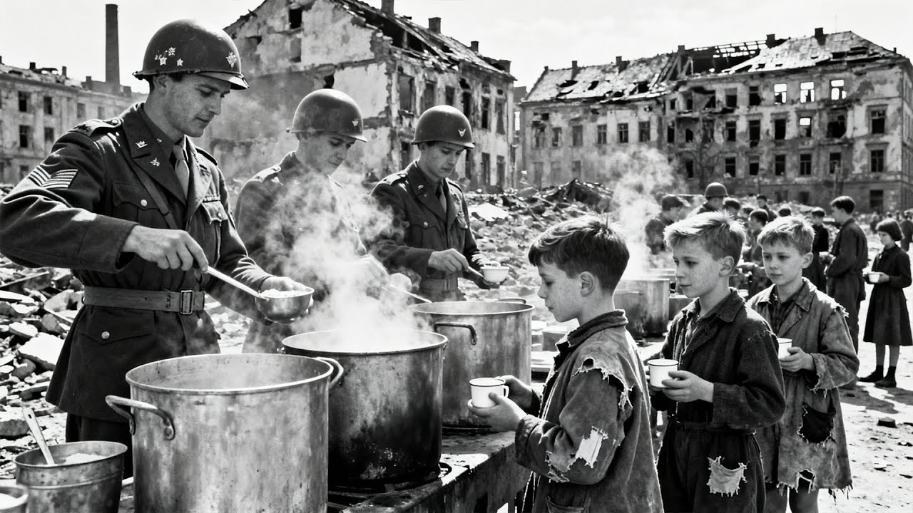 April 15th, 1945. The morning artillery stops. After days of explosions that shook their cellar hideout, sudden silence terrifies Greta more than the bombs ever did. She clutches 8-year-old Hans and 5-year-old Maria in the darkness, whispering that the Americans will come soon. For months, Nazi propaganda had painted these soldiers as monsters who would hurt German children.