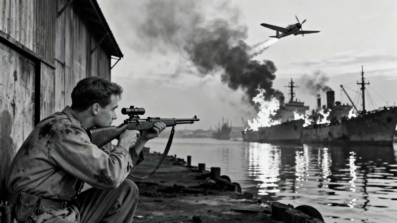 Through the scope, Brewster watched his bullet pass harmlessly behind the aircraft, a clean miss that disappeared into the chaos without effect. The pilot continued his deadly work, his machine guns stitching lines of death across the water where American sailors fought for their lives against an enemy they could neither reach nor effectively engage.