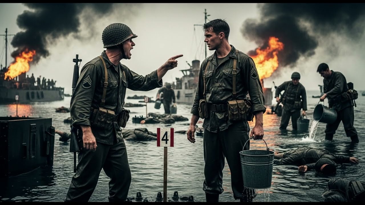 Crouch behind a disabled landing craft. He watches an engineer inch forward, bayonet probing, hand shaking. Too slow. Becker eyes the surf, the sand, the scattered gear, fuel cans, ammo boxes, empty water buckets. An intuitive leap hits him, the kind born from years of limited resources. He grabs a standardisssue galvanized steel bucket, fills it halfway with seawater, and pours it onto the sand ahead.
