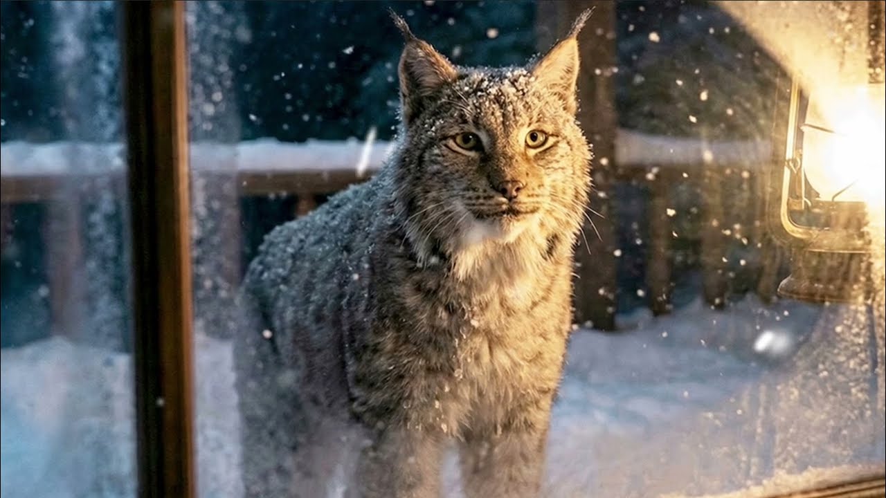 Suddenly, through the howling wind, William heard a new sound. Someone was scratching at the front door. Not knocking but scratching hard, persistent and desperate, William grabbed his rifle, went to the window and shone his flashlight. What he saw made him freeze. On the porch, waist deep in snow, stood a massive adult lynx. It was the mother.